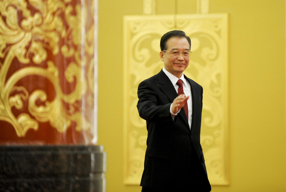 3月14日上午,國務院總理溫家寶在人民大會堂三樓金色大廳與采訪十一屆全國人大三次會議的中外記者見面并回答記者提出的問題。溫家寶總理闊步走進金色大廳。中新社記者 廖攀 攝 圖片來源:中國新聞網(wǎng)