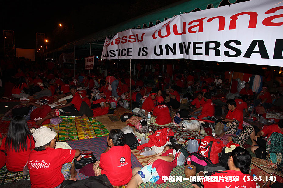 周六,泰國“紅衫軍”陸續(xù)從泰國北部、東北部等外府進入曼谷市,在集會主會場幸福橋和五馬路路段搭設演講舞臺和帳篷,拉開大規(guī)模示威序幕。圖片來源:中國新聞網(wǎng)