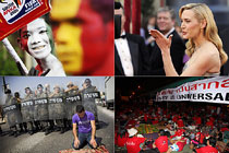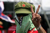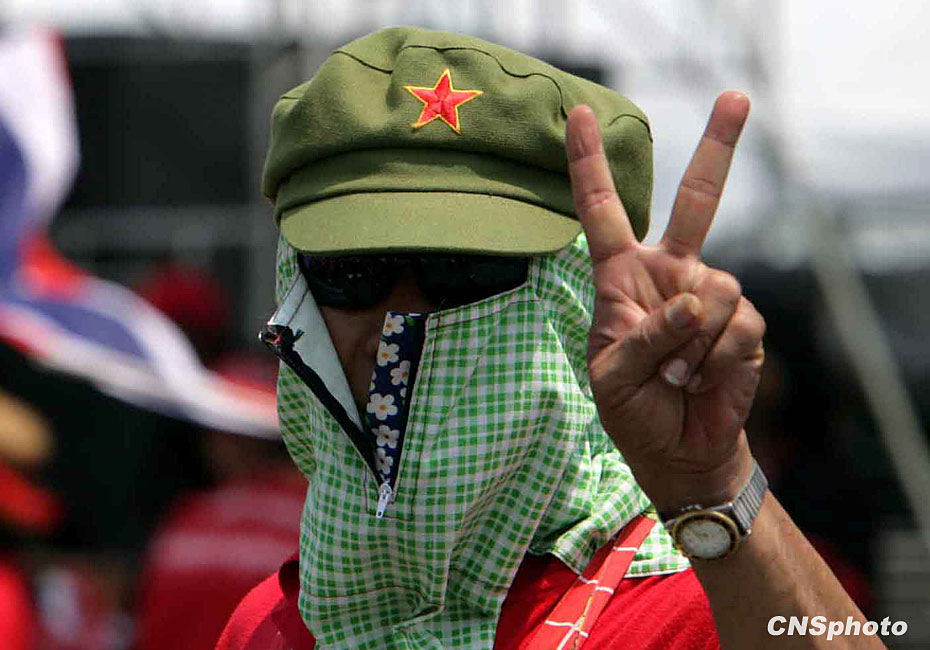 3月13日起,泰國“紅衫軍”陸續(xù)從泰國北部、東北部等外府進入曼谷市,在集會主會場搭設(shè)演講舞臺和帳篷,拉開大規(guī)模示威序幕。圖片來源:中國新聞網(wǎng)