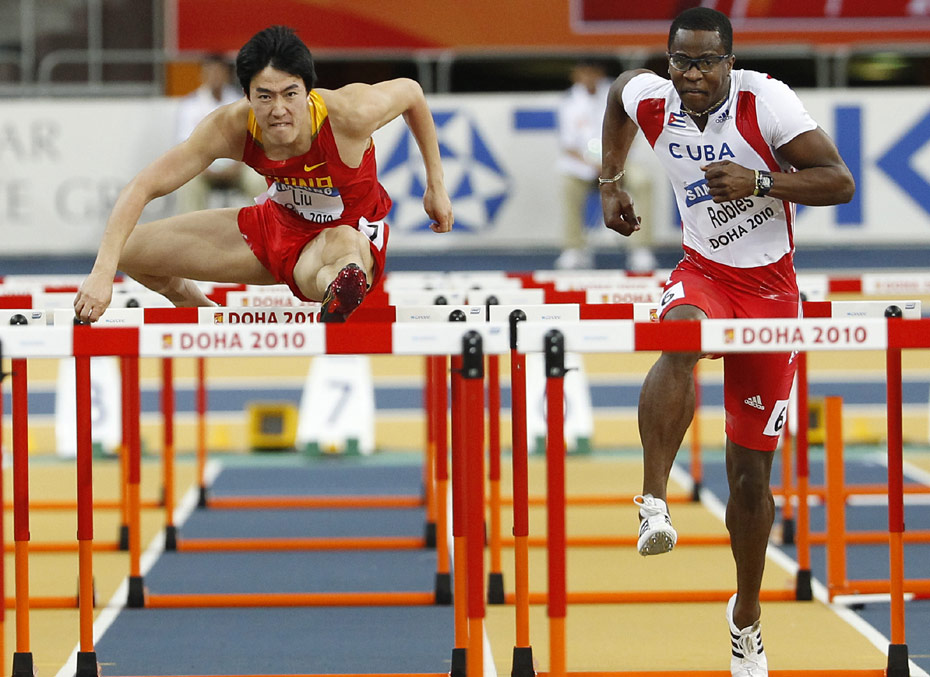 在14日晚間結(jié)束的多哈室內(nèi)田徑世錦賽60米欄決賽中,劉翔僅僅以7秒65的成績(jī)獲得第七名。古巴選手羅伯斯則以7秒34成績(jī)奪得冠軍并打破室內(nèi)世錦賽賽會(huì)紀(jì)錄。圖片來(lái)源:中國(guó)新聞網(wǎng)