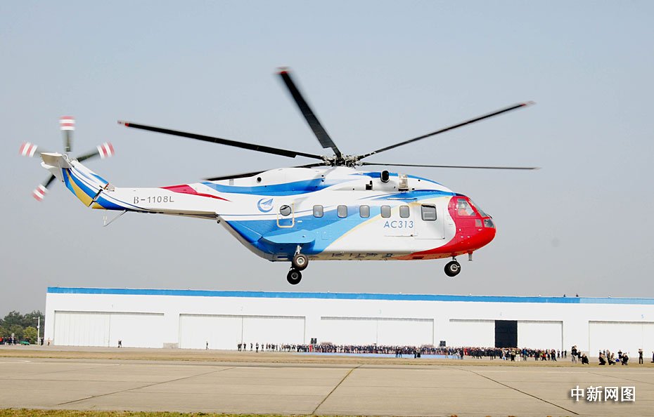 3月18日上午,中國首架大型民用直升機AC313在江西省景德鎮(zhèn)市成功首飛,標志著中國和美、歐、俄一樣具備了自主研制大型直升機的能力。圖片來源:中國新聞網(wǎng)