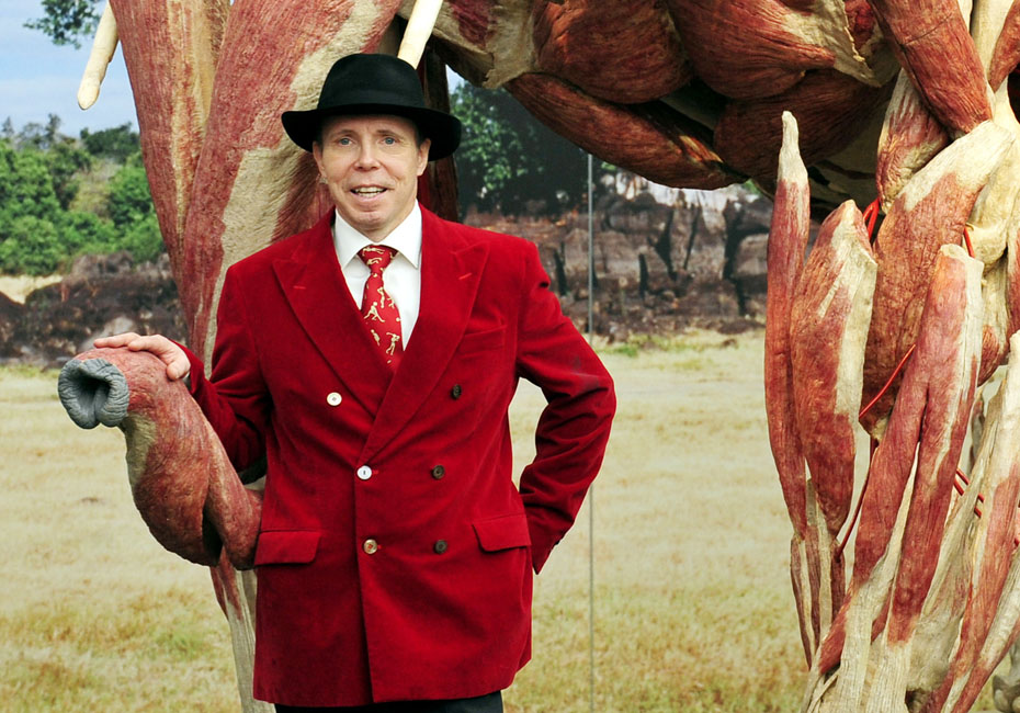 德國著名解剖學(xué)家鞏特爾·馮·哈根斯博士被稱為“死亡先生”,目前展出的是有史以來的最大的動物尸體。體型巨大的“桑芭”尸體高3.5米,重3.2噸。據(jù)悉“桑芭”將于2010年4月歸還諾因基興動物園。圖片來源:中國新聞網(wǎng)