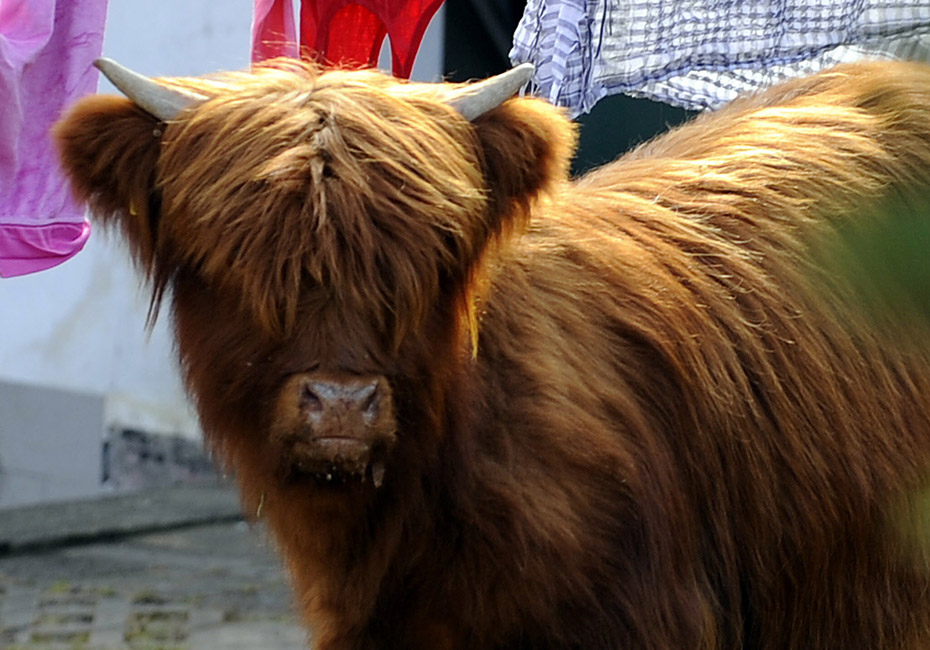 3月18日,德國(guó)一頭蘇格蘭高地牛來(lái)到一居民院內(nèi)懶洋洋的曬太陽(yáng),最后經(jīng)過(guò)獸醫(yī)的麻醉和消防員協(xié)力才將這頭蠻力十足的家伙“制服”。圖片來(lái)源:中國(guó)新聞網(wǎng)
