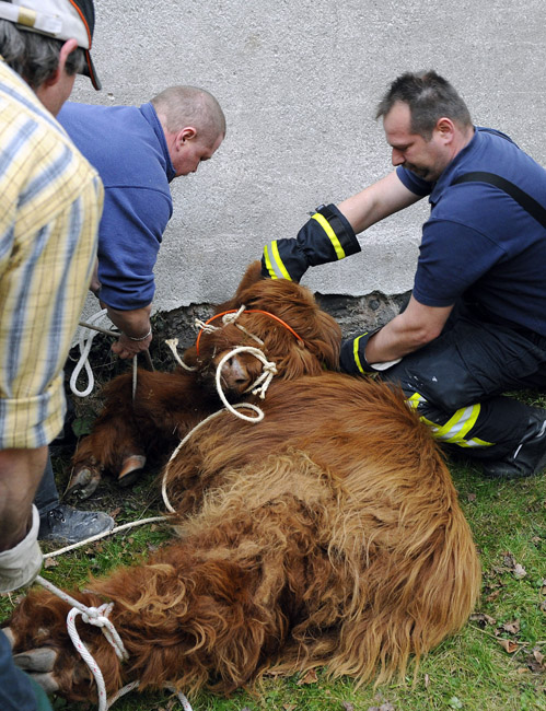 3月18日,德國一頭蘇格蘭高地牛來到一居民院內懶洋洋的曬太陽,最后經過獸醫(yī)的麻醉和消防員協(xié)力才將這頭蠻力十足的家伙“制服”。圖片來源:中國新聞網