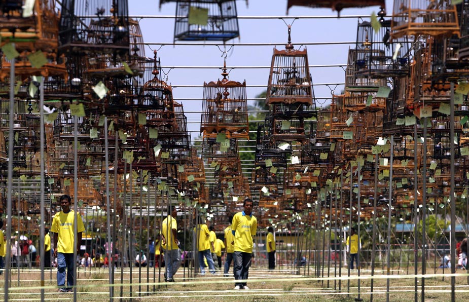 3月24日,一場(chǎng)“鳥(niǎo)兒唱歌”大賽在泰國(guó)南部的那拉提瓦府舉行。圖片來(lái)源:中國(guó)新聞網(wǎng)