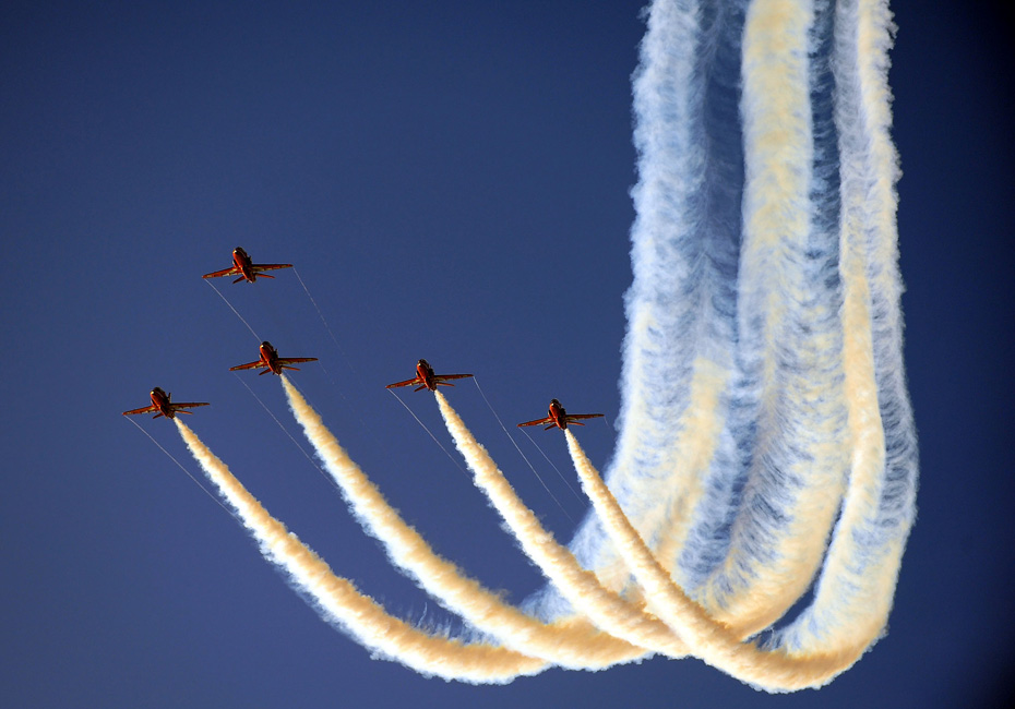 圖為英國“紅箭”特技飛行隊(duì)訓(xùn)練的資料圖片。