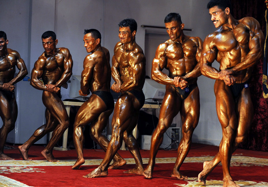 3月24日,印度舉辦第37屆健美錦標賽,來自陸軍、空軍和海軍的防務人員在健美比賽上大秀肌肉展現(xiàn)男性魅力。圖片來源:中國新聞網(wǎng)