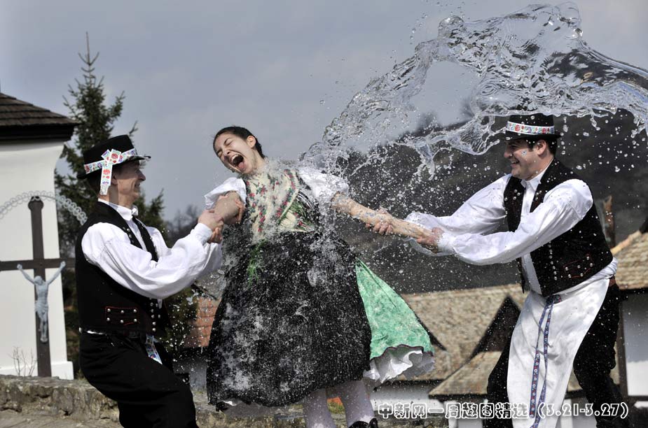 3月26日,在匈牙利首都布達(dá)佩斯以東被譽(yù)為世界文化遺產(chǎn)的霍洛克村,當(dāng)?shù)鼐用褚韵蚬媚锷砩蠞娝膫鹘y(tǒng)儀式慶祝復(fù)活節(jié)。圖片來源:中國新聞網(wǎng)>>點(diǎn)擊觀看詳細(xì)內(nèi)容