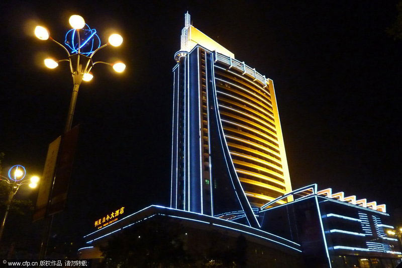 3月27日20時(shí)30分,四川省遂寧市明星康年大酒店準(zhǔn)時(shí)熄燈,與全球同步“地球一小時(shí)”,以實(shí)際行動推動這項(xiàng)目前世界上規(guī)模最大的環(huán)保行動。圖為酒店熄燈前的景觀。鐘敏/CFP