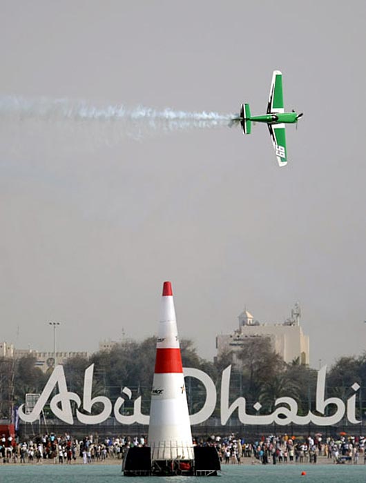 近日,紅牛飛行系列賽世界錦標賽預(yù)選賽在阿拉伯聯(lián)合酋長國阿布扎比舉行。參加比賽飛行員不但要有高速的駕駛技術(shù),還要有勇往直前的膽量。圖片來源:中國新聞網(wǎng)