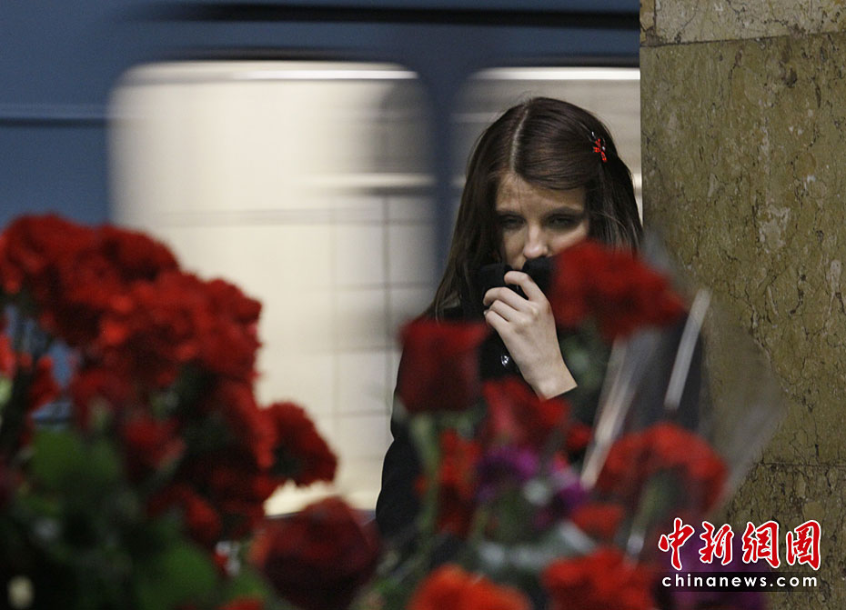 俄羅斯把3月30日定為全國(guó)哀悼日,悼念地鐵爆炸案中的遇難者。所有國(guó)家行政機(jī)構(gòu)都降半旗致哀。圖片來源:中國(guó)新聞網(wǎng)