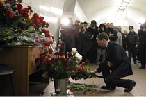 圖為民眾哀悼地鐵爆炸事故遇難者。