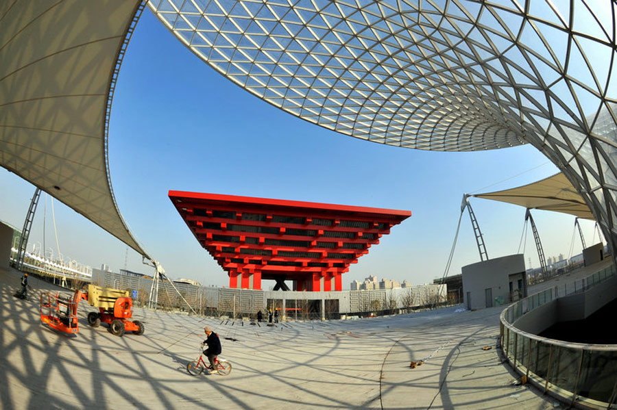 自1851年首次在英國倫敦舉辦以來,世界博覽會已走過了150多年,世博會上各個國家的展館也成為記錄一個國家發(fā)展和進步的“書簽”。讓我們通過這一百多年來出現(xiàn)在世界博覽會上的中國館,來回眸世博會的百年變遷,感受世博會與中國結(jié)下的不解之緣。圖為建設(shè)中的上海世博會世博園區(qū)-中國館、陽光谷、世博軸。至誠/CFP