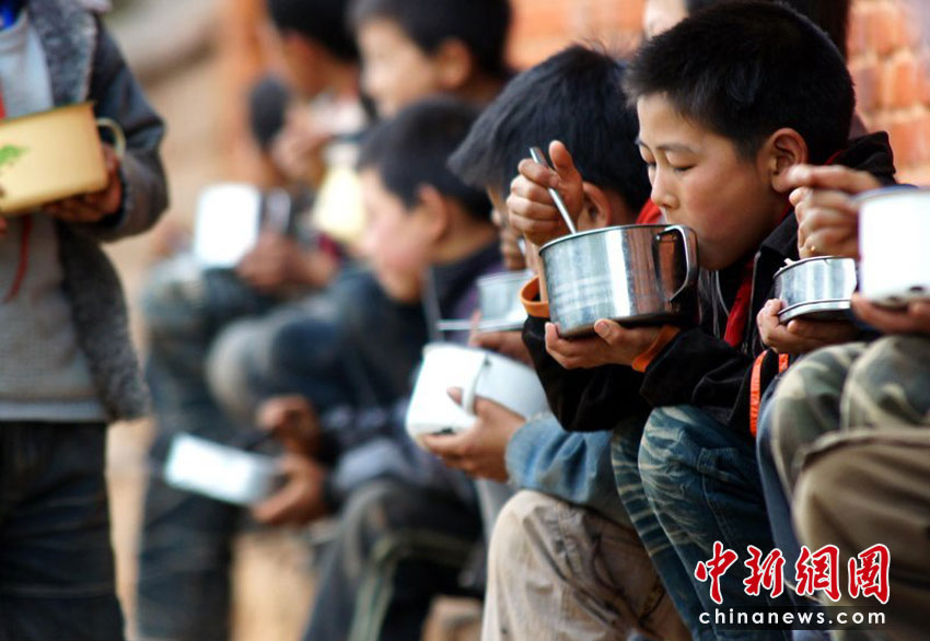 孩子們吃飯時(shí)都不喝水喝湯,干旱已讓他們適應(yīng)了這樣的生活。沙浪 攝