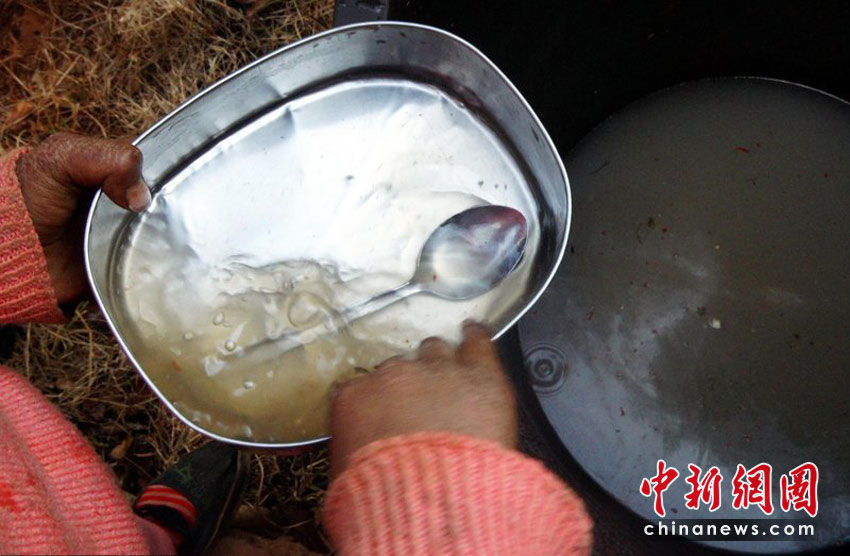 孩子們洗飯盒就用這么多水。沙浪 攝