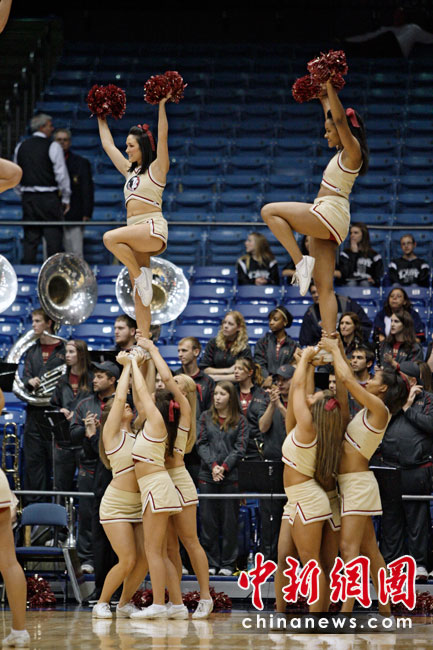 啦啦隊的歷史可追溯到原始部落時期,戰(zhàn)士們狩獵凱旋歸來時,人們給予歡呼及鼓勵的動作。最初的拉拉隊要追溯到19世紀80年代的美國大學校園,當時的形式是在大學里的橄欖球賽上,一位領隊站在一大群人前面領導他們?yōu)樽约旱那蜿爡群爸。圖片來源:中國新聞網(wǎng)