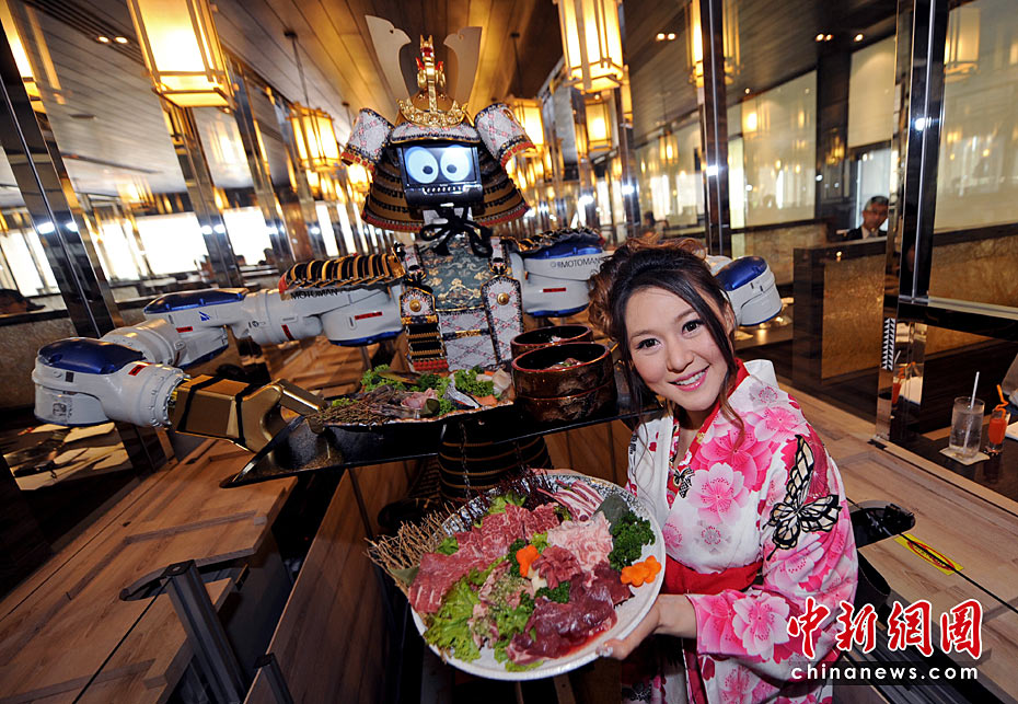 這家日本餐館是泰國首家擁有機器人服務(wù)員的餐館,顧客可以通過電子觸摸屏進行點菜,機器人則會帶來相應(yīng)的服務(wù)。機器人服務(wù)員能有節(jié)奏地跳舞,還可以自動到餐桌為客人收走空盤子。