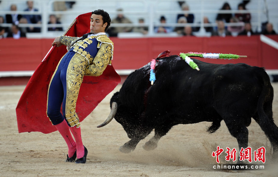 當(dāng)?shù)貢r(shí)間4月5日,法國南部上演了一場精彩的斗牛大賽,慶祝復(fù)活節(jié)的到來。圖片來源:中國新聞網(wǎng)
