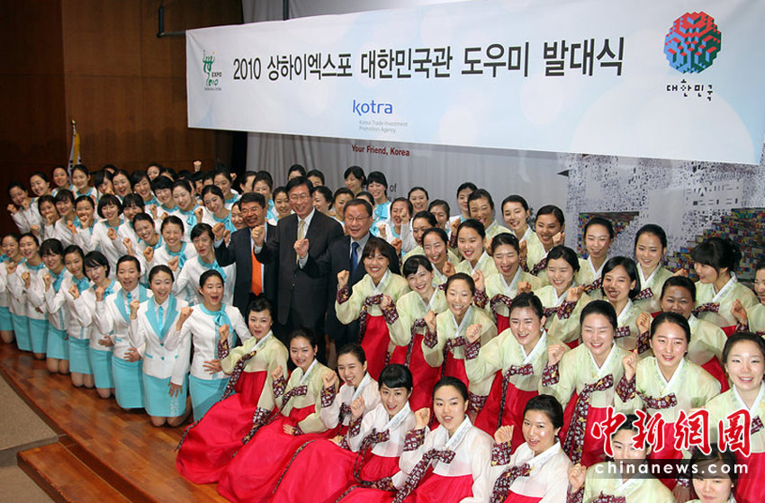 2010年4月5日,負(fù)責(zé)上海世博會(huì)韓國館宣傳和介紹的服務(wù)人員90人當(dāng)日在首爾舉行了組團(tuán)儀式。
