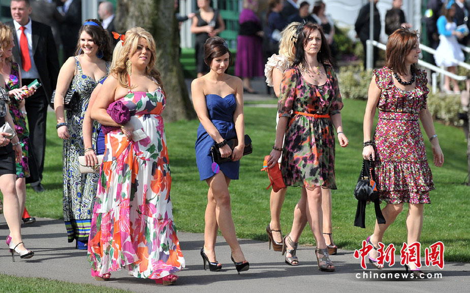 4月9日,英國(guó)安特里,女士們盛裝出席安特里賽馬場(chǎng)女士日活動(dòng)。