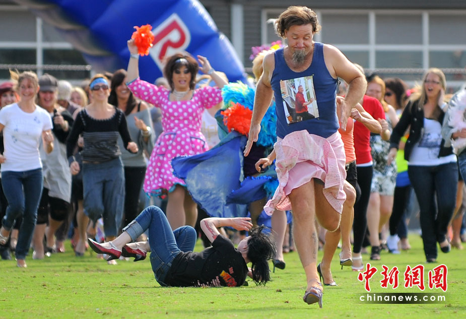 澳民眾挑戰(zhàn)多人穿高跟鞋賽跑世界紀錄