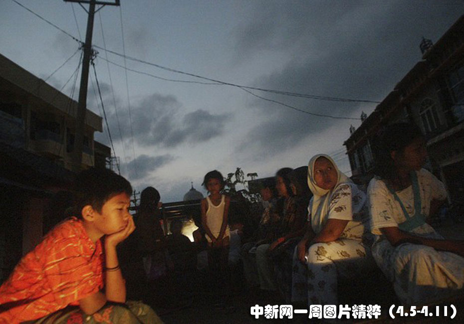 4月7日周三,印尼蘇門答臘島發(fā)生里氏7.7級地震,地震引發(fā)輕微海嘯及普遍恐慌,該地區(qū)曾在2004年的海嘯中遭受重創(chuàng),逾20萬人喪生。圖為地震發(fā)生后,當?shù)鼐用翊糇趹敉獾目ㄜ嚿稀?/p>