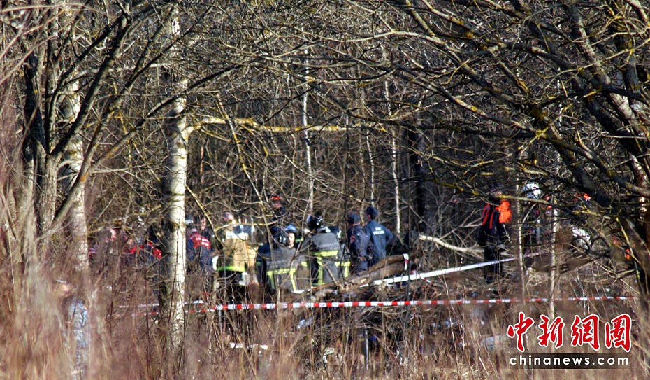 4月11日,波蘭總統(tǒng)卡欽斯基專機在俄羅斯斯摩棱斯克軍用機場墜毀地點附近的道路開通,但是警戒線核心區(qū)仍然關閉。俄波調(diào)查人員正在現(xiàn)場工作。圖片來源:中國新聞網(wǎng)