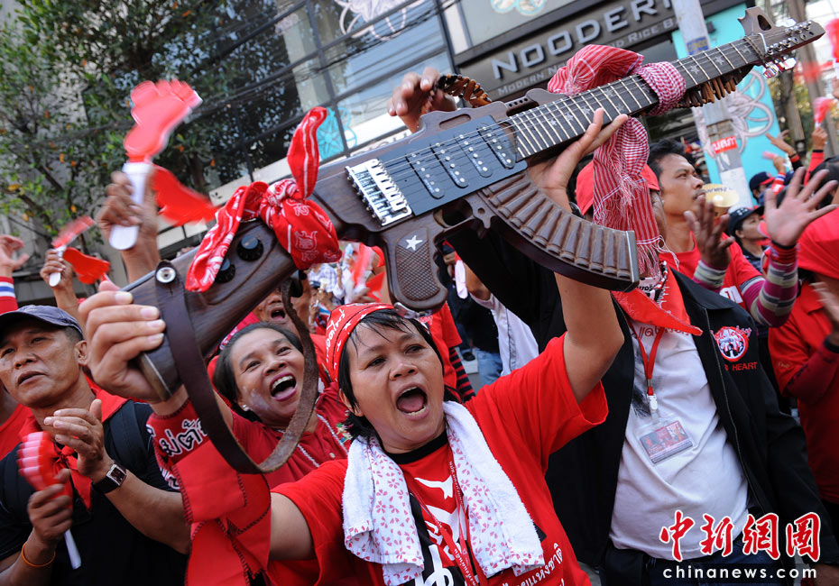 泰國(guó)紅衫軍抬棺材游行