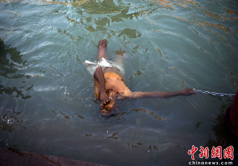 4月13日,印度教傳統(tǒng)節(jié)日“大壺節(jié)”步入尾聲,前來參加盛典的上萬苦行僧赤裸身體涌入恒河,祈求洗清身上的“罪惡”。圖片來源:中國(guó)新聞網(wǎng)