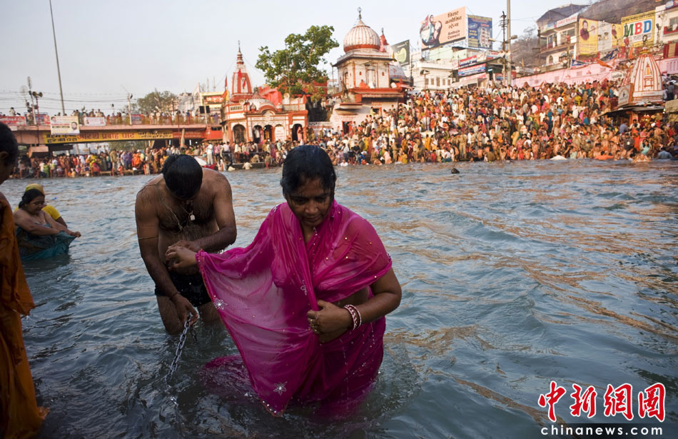 4月13日,印度教傳統(tǒng)節(jié)日“大壺節(jié)”步入尾聲,前來(lái)參加盛典的上萬(wàn)苦行僧赤裸身體涌入恒河,祈求洗清身上的“罪惡”。圖片來(lái)源:中國(guó)新聞網(wǎng)