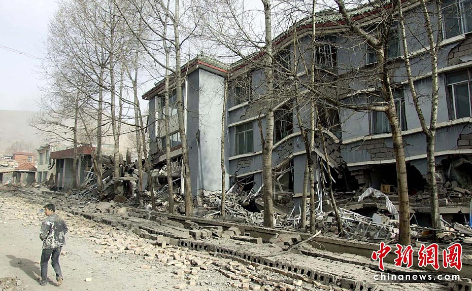 圖為4月14日,地震災(zāi)后的玉樹(shù)縣縣城結(jié)古鎮(zhèn)。中新社發(fā) 張守國(guó) 攝