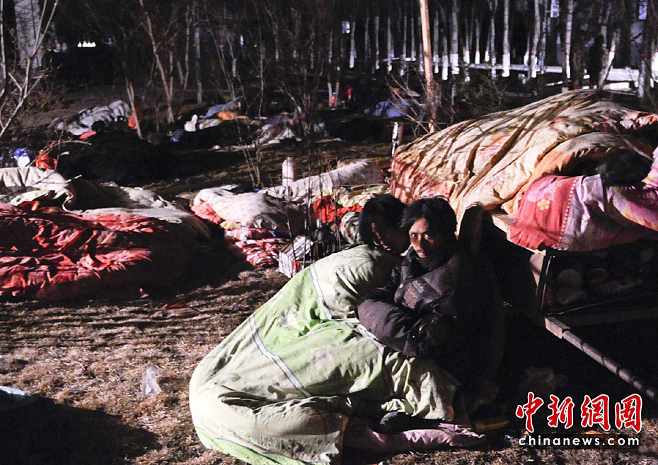 圖為4月15日凌晨,青海玉樹地震受災民眾在露天休息。中新社發(fā) 廖攀 攝