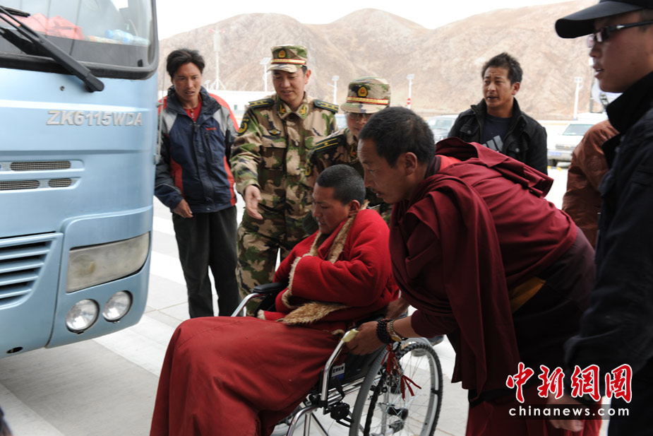 4月15日,玉樹地震傷員正源源不斷的從玉樹機(jī)場乘飛機(jī),被運(yùn)往成都等地救治。中新社/中新網(wǎng)記者 符永康 攝
