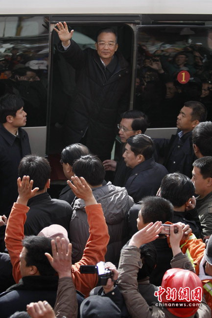 2010年4月16日,中國國務(wù)院總理溫家寶在青海省玉樹藏族自治州玉樹縣地震災(zāi)區(qū)視察救援現(xiàn)場。4月14日07時49分許,青海省玉樹藏族自治州玉樹縣(北緯33.1,東經(jīng)96.7)發(fā)生7.1級地震。中新社發(fā) 盛佳鵬 攝