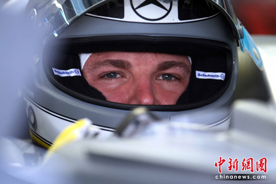 4月16日,2010國(guó)際汽聯(lián)F1世界錦標(biāo)賽上海站在上海國(guó)際賽車場(chǎng)開始車手第一、第二次練習(xí)賽。圖為代表梅賽德斯GP車隊(duì)出戰(zhàn)的德國(guó)車手羅斯伯格。 中新社記者 任晨鳴 攝