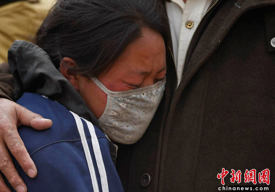 2010年4月16日,青海玉樹(shù)藏族自治州玉樹(shù)縣結(jié)古鎮(zhèn)一所中學(xué)的震災(zāi)救援現(xiàn)場(chǎng),痛失孩子的母親淚流不止。中新社發(fā) 盛佳鵬 攝