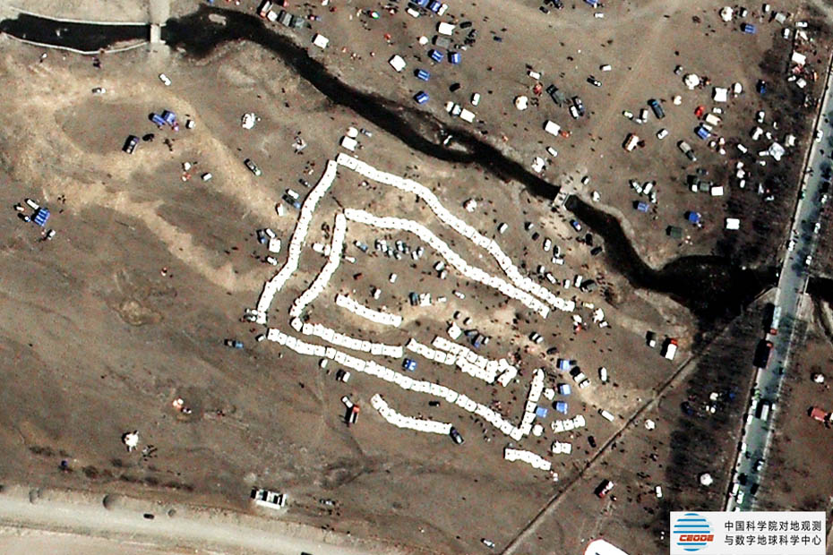 災(zāi)后避難所-馬場(chǎng)帳篷〔由中國(guó)科學(xué)院對(duì)地觀測(cè)與數(shù)字地球科學(xué)中心拍攝〕