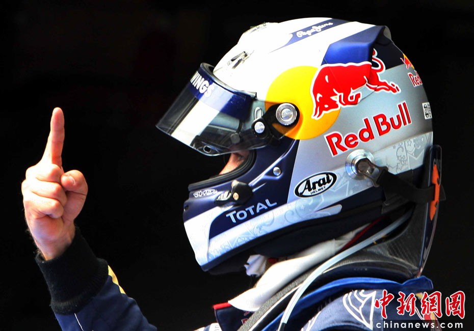 4月17日下午,2010國際汽聯(lián)F1世界錦標(biāo)賽上海站在上海國際賽車場舉行排位賽,代表紅牛車隊(duì)出戰(zhàn)的德國車手維特爾獲得桿位,隊(duì)友、澳大利亞車手韋伯獲得第二名,法拉利車隊(duì)的西班牙車手阿隆索獲得第三名。中新社記者 任晨鳴 攝
