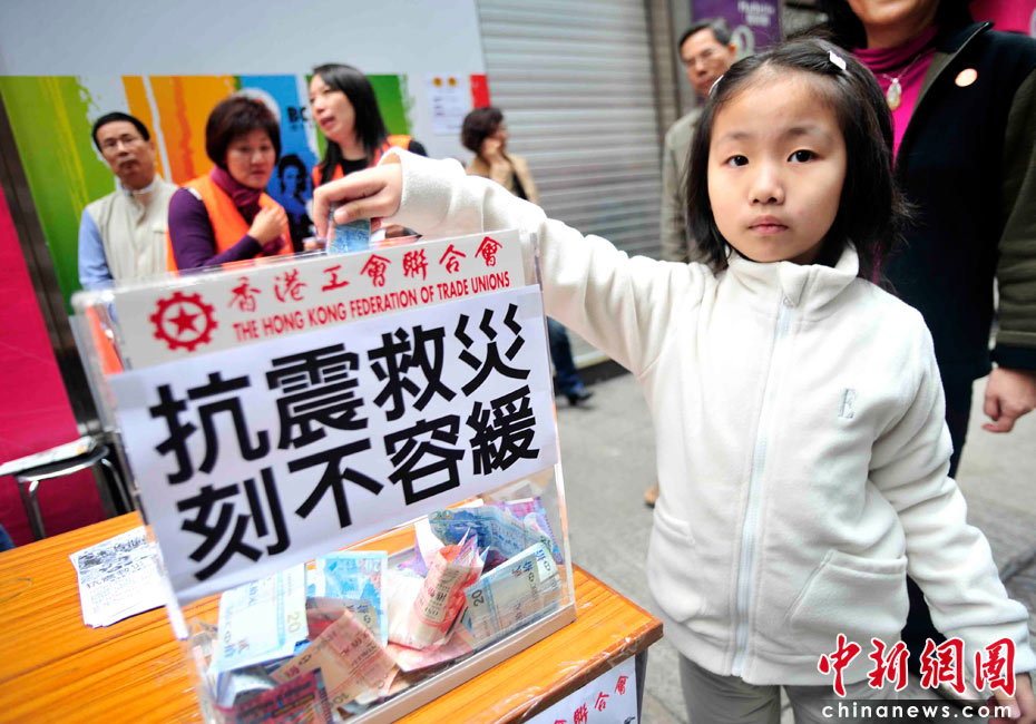 4月17日,香港市民在旺角街頭募捐。4月14日,青海省玉樹(shù)藏族自治州玉樹(shù)縣發(fā)生7.1級(jí)地震,給當(dāng)?shù)厝嗣袢罕娚?cái)產(chǎn)造成嚴(yán)重?fù)p失。災(zāi)情牽動(dòng)廣大香港同胞的心,連日來(lái),香港社會(huì)各界團(tuán)體及市民紛紛為地震災(zāi)區(qū)捐款。中新社發(fā) 譚達(dá)明 攝