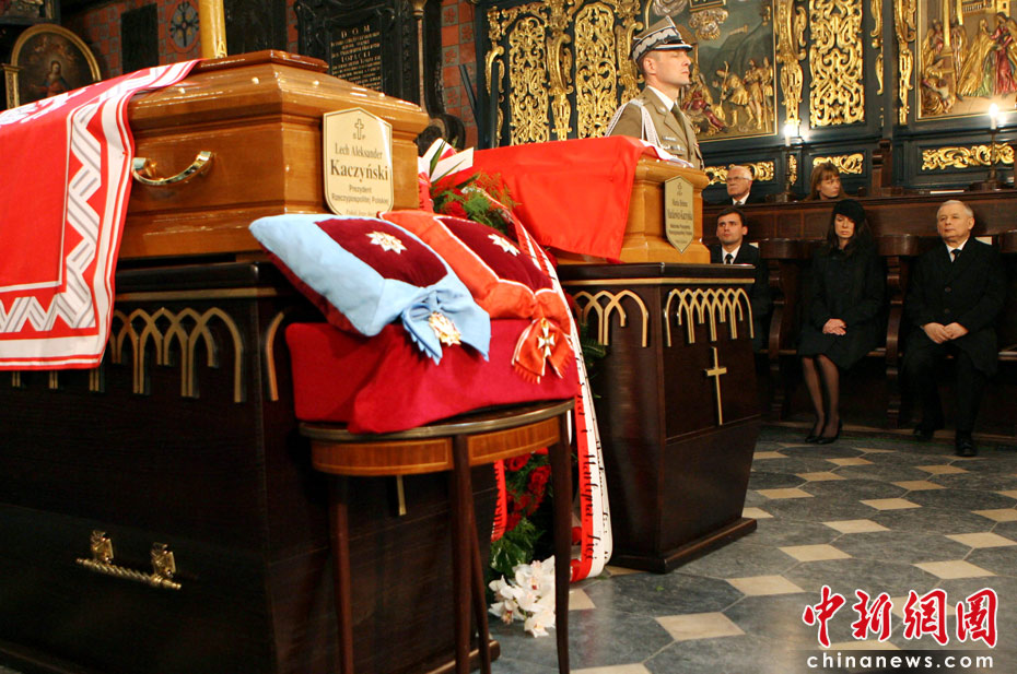 當(dāng)?shù)貢r(shí)間4月18日,卡欽斯基夫婦的葬禮在波蘭南部城市克拉科夫舉行。波蘭總統(tǒng)卡欽斯基及其夫人乘坐的專機(jī)10日在俄羅斯斯摩棱斯克失事,機(jī)上人員全部遇難。圖片來(lái)源:中國(guó)新聞網(wǎng)