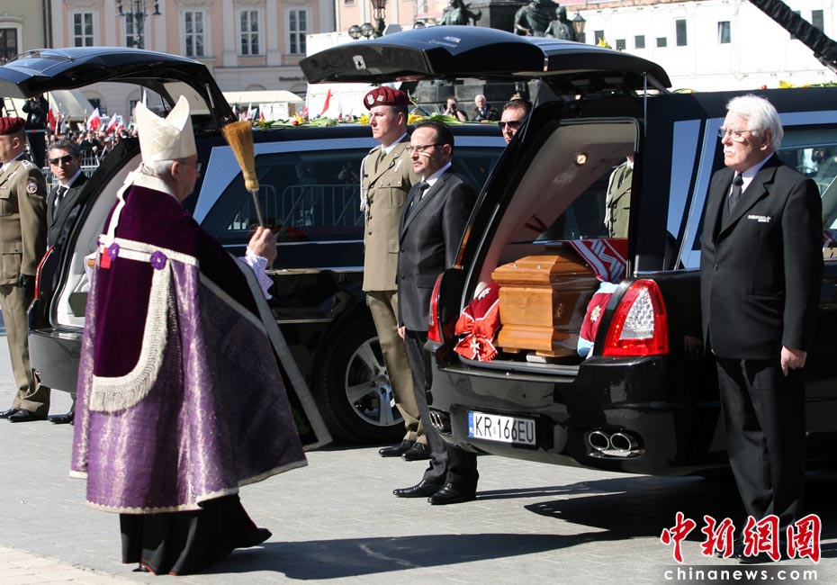 當(dāng)?shù)貢r(shí)間4月18日,卡欽斯基夫婦的葬禮在波蘭南部城市克拉科夫舉行。波蘭總統(tǒng)卡欽斯基及其夫人乘坐的專機(jī)10日在俄羅斯斯摩棱斯克失事,機(jī)上人員全部遇難。圖片來源:中國(guó)新聞網(wǎng)