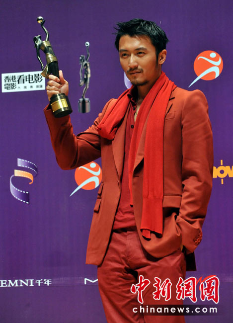 4月18日晚,“第二十九屆香港電影金像獎(jiǎng)”頒獎(jiǎng)典禮在香港文化中心大劇院隆重舉行,藝人謝霆鋒憑演出電影“十月圍城”奪得最佳男配角獎(jiǎng)項(xiàng)。中新社發(fā) 鄧慶樂 攝