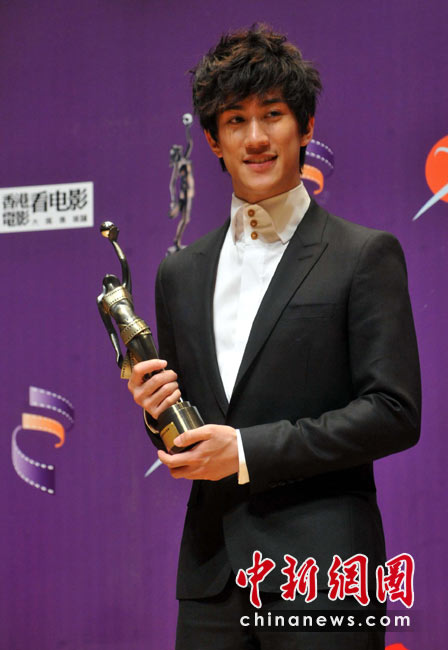 4月18日晚,“第二十九屆香港電影金像獎”頒獎典禮在香港文化中心大劇院隆重舉行,新晉演員李治廷憑演出電影“歲月神偷”奪得最佳新演員獎項(xiàng)。中新社發(fā) 鄧慶樂 攝