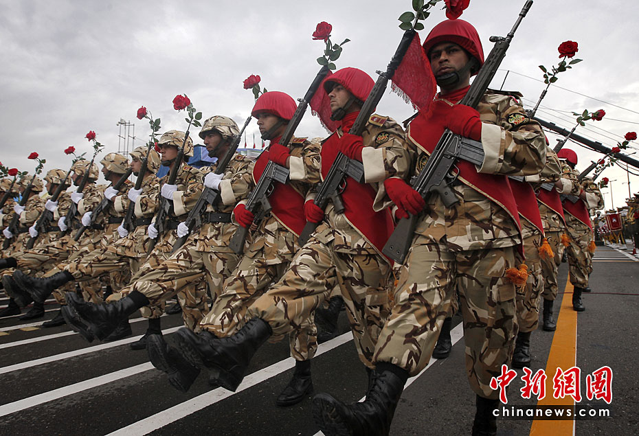 4月18日,伊朗德黑蘭舉行伊朗建軍節(jié)閱兵式。伊朗在閱兵式上展出了“力量”、“流星”和“泥石”等地對(duì)地導(dǎo)彈。圖片來(lái)源:中國(guó)新聞網(wǎng)
