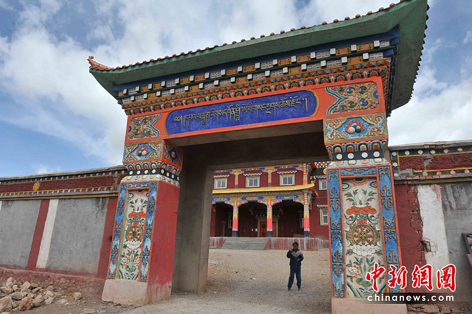 4月19日,新聞?dòng)浾呤状芜M(jìn)入青海玉樹(shù)7.1級(jí)強(qiáng)烈地震的震中點(diǎn)上拉秀鄉(xiāng)日麻村,出乎意料的是全村無(wú)一傷亡,村中心的查榮寺和幾家民房只是出現(xiàn)裂縫,堪為奇跡。中新社發(fā) 賈國(guó)榮 攝