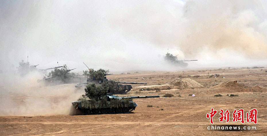 巴基斯坦軍隊4月18日出動戰(zhàn)機、坦克和重型火炮,在靠近印度邊界的東部沙漠地區(qū)舉行“新決心—3”軍事演習(xí)。圖片來源:中國新聞網(wǎng)