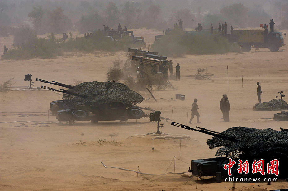 巴基斯坦軍隊4月18日出動戰(zhàn)機、坦克和重型火炮,在靠近印度邊界的東部沙漠地區(qū)舉行“新決心—3”軍事演習。圖片來源:中國新聞網(wǎng)