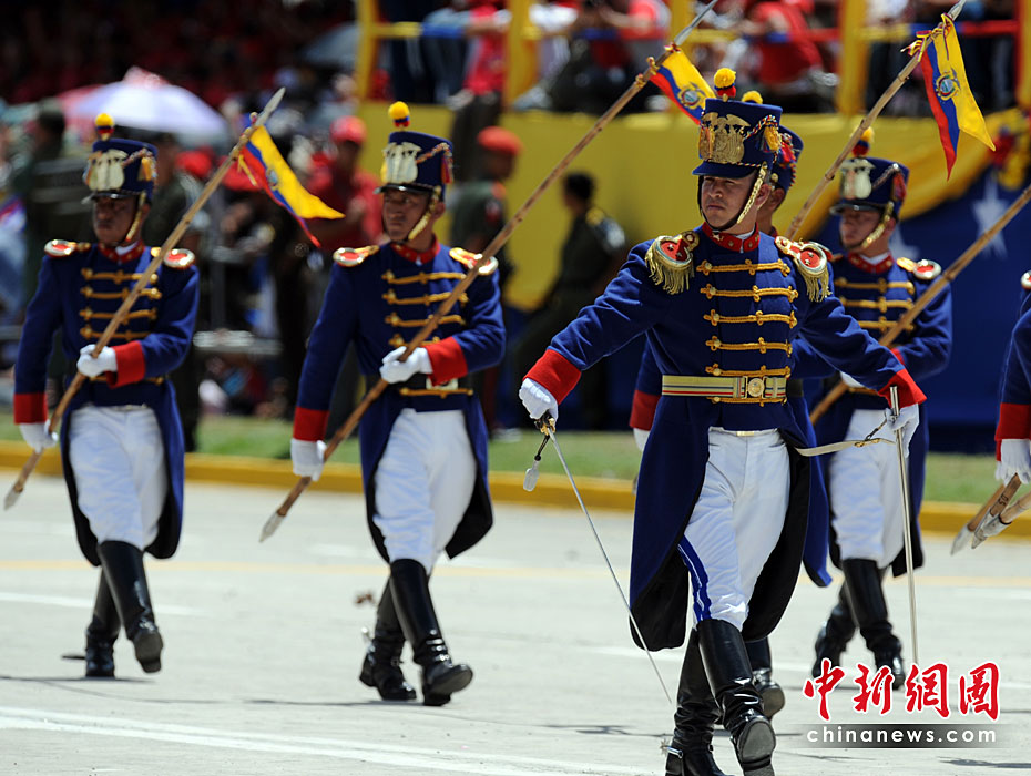 委內(nèi)瑞拉首都加拉加斯19日舉行盛大游行活動,紀(jì)念反殖民統(tǒng)治爭取獨立的斗爭開始200周年。圖片來源:中國新聞網(wǎng)