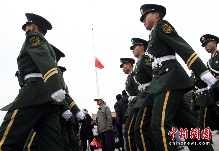 4月21日,為表達(dá)全國各族人民對(duì)青海玉樹地震遇難同胞的深切哀悼,中國國務(wù)院決定,舉行全國哀悼活動(dòng),全國和駐外使領(lǐng)館下半旗志哀,停止公共娛樂活動(dòng)。中新社發(fā) 杜洋 攝