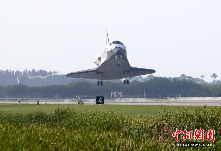 美國發(fā)現(xiàn)號航天飛機于當(dāng)?shù)貢r間4月20日成功降落在佛羅里達州肯尼迪航天中心,結(jié)束了為期15天的國際空間站建設(shè)之旅。圖片來源:中國新聞網(wǎng)